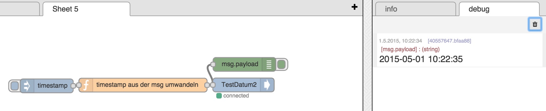 Was ich sehe ist die UNIXzeit via Clock-Knoten und ich gestehe, dass ich bei der Umrechnung nicht wirklich weiterkomme.